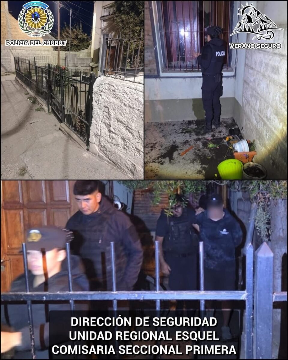 El hecho ocurrió alrededor de las 2:59 horas del 24 de enero, cuando el Centro de Monitoreo alertó sobre un masculino que estaría causando roturas de vidrios y generando disturbios en un domicilio particular. Ante el aviso, personal del Comando de la Unidad Regional Esquel, junto con efectivos de la Comisaría Seccional Primera, acudieron al lugar.