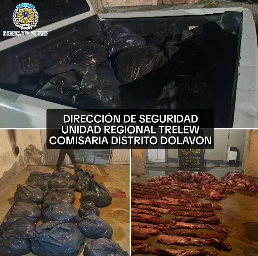 Un operativo de control vehicular de la Policía del Chubut terminó con la detención de un hombre con pedido de captura vigente y el secuestro de más de media tonelada de carne de guanaco en la Ruta Nacional 25, a la altura del kilómetro 52.