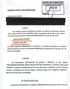 La denuncia, presentada por el abogado Martín Manuel Saavedra luego de que el caso se hiciera público a través del portal Madryn Ahora, sostiene que el matrimonio se habría extendido más allá del lote 24 —que figura a su nombre— y habría ocupado los lotes fiscales 29 y 30 mediante cercado, mejoras y uso efectivo del suelo.