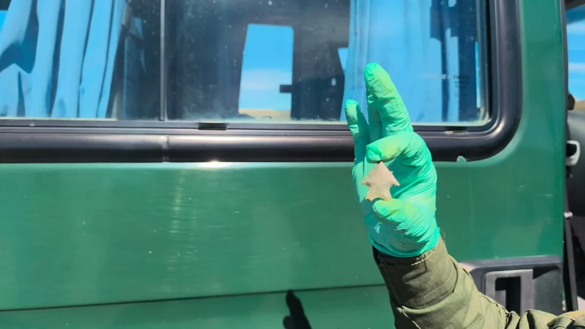 Durante la inspección, los gendarmes identificaron a un pasajero mayor de edad y, al revisar su mochila, encontraron 24 puntas de flecha similares a las utilizadas por pueblos originarios para actividades de caza. En el mismo equipaje también hallaron una pieza de madera fosilizada.