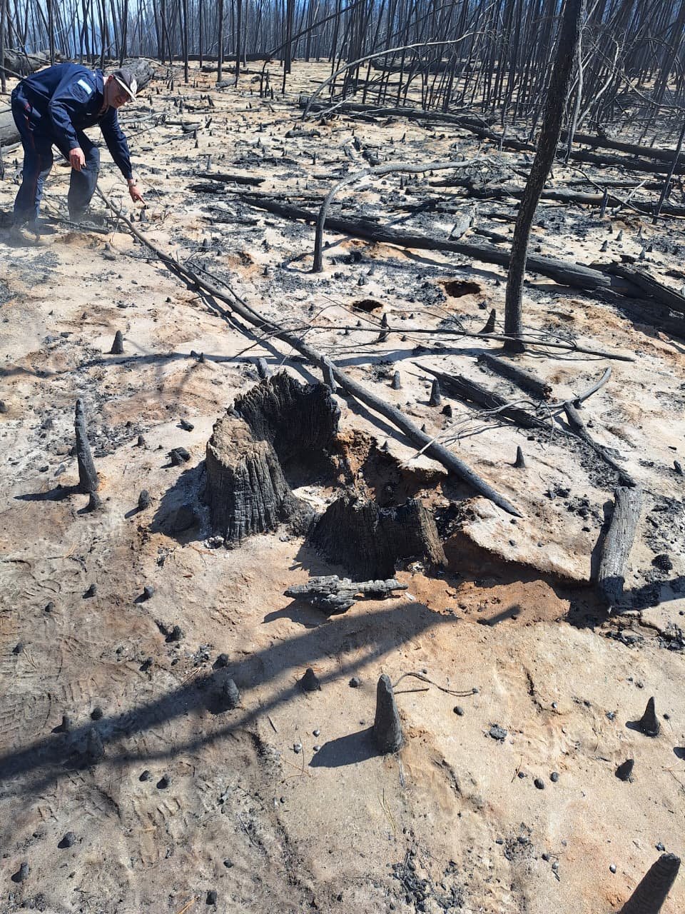 Como parte de la investigación, se tomaron muestras de suelo, que serán enviadas al Laboratorio de Investigaciones de la Policía Federal Argentina, y se convocó a la División de Canes de esa fuerza para confirmar la presencia de acelerantes en el terreno.