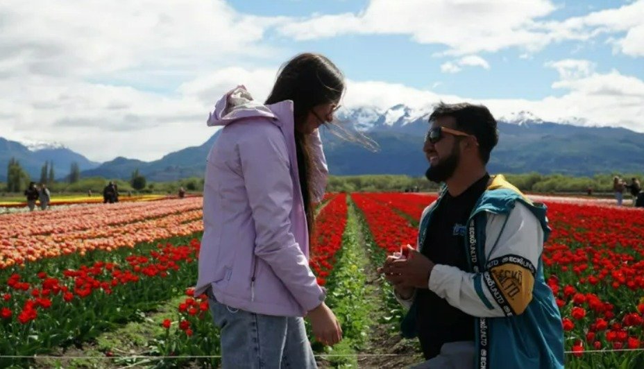 El memorable momento fue capturado por testigos en video y fotografías, inmortalizando la felicidad de la pareja en uno de los marcos naturales más bellos de la Patagonia argentina. La propuesta se suma a la lista de anécdotas que convierten al Campo de Tulipanes no solo en un atractivo turístico, sino también en un sitio emblemático para sellar compromisos y celebrar el romance.