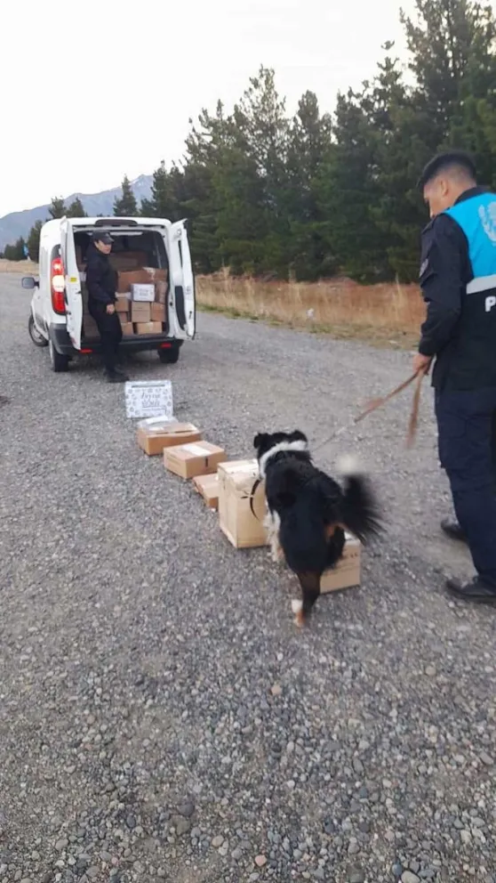 El procedimiento contó con la colaboración de un can detector adiestrado, que marcó positivamente dos valijas pertenecientes a personas mayores de edad provenientes de la Comarca Andina del Paralelo 42. Tras obtener la autorización judicial correspondiente, los efectivos requisaron los bultos y secuestraron cigarrillos de marihuana de fabricación casera y envoltorios de nylon con la misma sustancia.