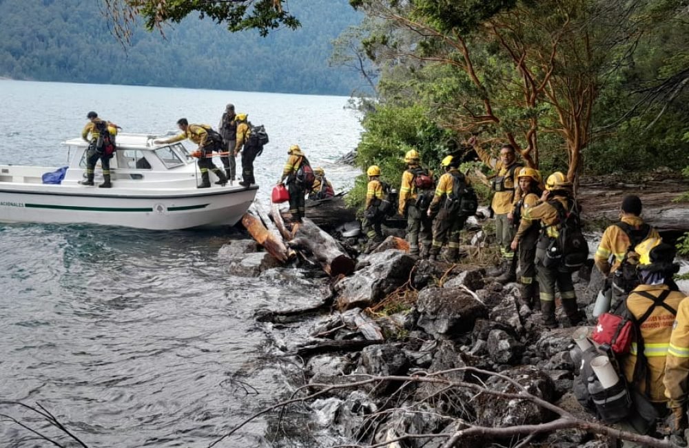 Este lunes se reforzó el operativo con el ingreso de 22 brigadistas (12 de Parques Nacionales y 10 del Servicio Provincial), quienes fueron trasladados por vía lacustre con apoyo de la empresa Safari Lacustre. Las tareas se concentran en avanzar hacia la cabeza del incendio, manteniendo el anclaje realizado el día anterior y con respaldo de medios aéreos.