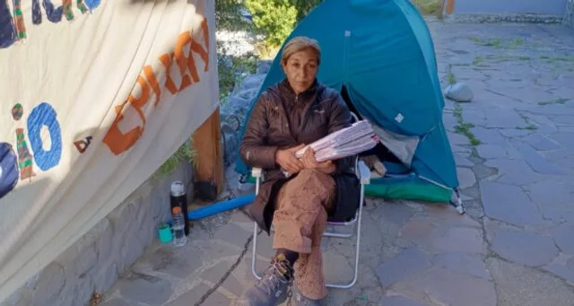 Una vecina de Epuyén inició esta semana una protesta frente al edificio municipal, donde se encadenó e instaló un acampe, además de comenzar una huelga de hambre. La medida busca visibilizar un reclamo territorial y denunciar la falta de reconocimiento estatal de su situación habitacional y su exclusión de los subsidios otorgados tras el incendio ocurrido en enero de 2025.