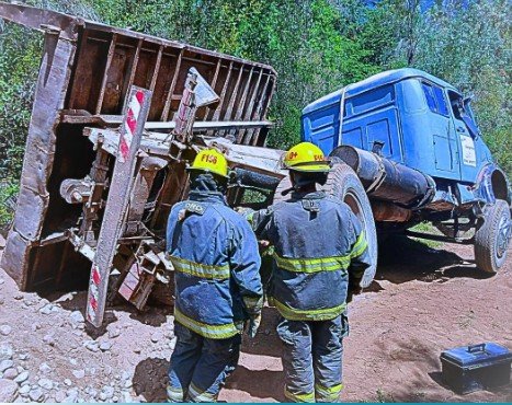 Un camión que transportaba ripio volcó este viernes al mediodía en la zona de Mallín Ahogado, en un camino vecinal ubicado aproximadamente a 5 kilómetros del cruce de Wharton.